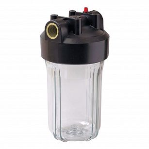 Гейзер прозрачный корпус фильтра ВВ10 1" для холодной воды с латунными вставками.