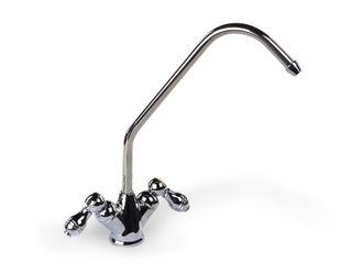 Кран с двумя вентилями обеспечивает подачу воды с минералами или без них. Кран изготовлен из современных экологически безопасных материалов с нанесением особо прочного хромированного покрытия и рассчитан на работу с холодной водой. Кран устанавливается на мойку или столешницу в любом удобном для эксплуатации месте.