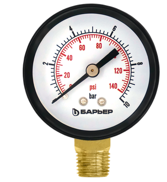 Манометр БАРЬЕР радиальный 0-10 бар460 руб. Оформить заказПоделиться:Манометры позволяют отслеживать повышение давления.Повышение давления в фильтре означает загрязнение фильтроэлемента.Пределы измерения давления воды - от 0 до 10 бар.