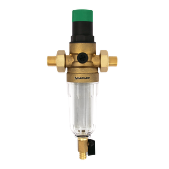 Основной особенностью фильтра является регулятор давления, позволяющий отрегулировать уровень давления, поступающей в систему водоснабжения. Уставка на регуляторе составляет от 1 до 6 атм.